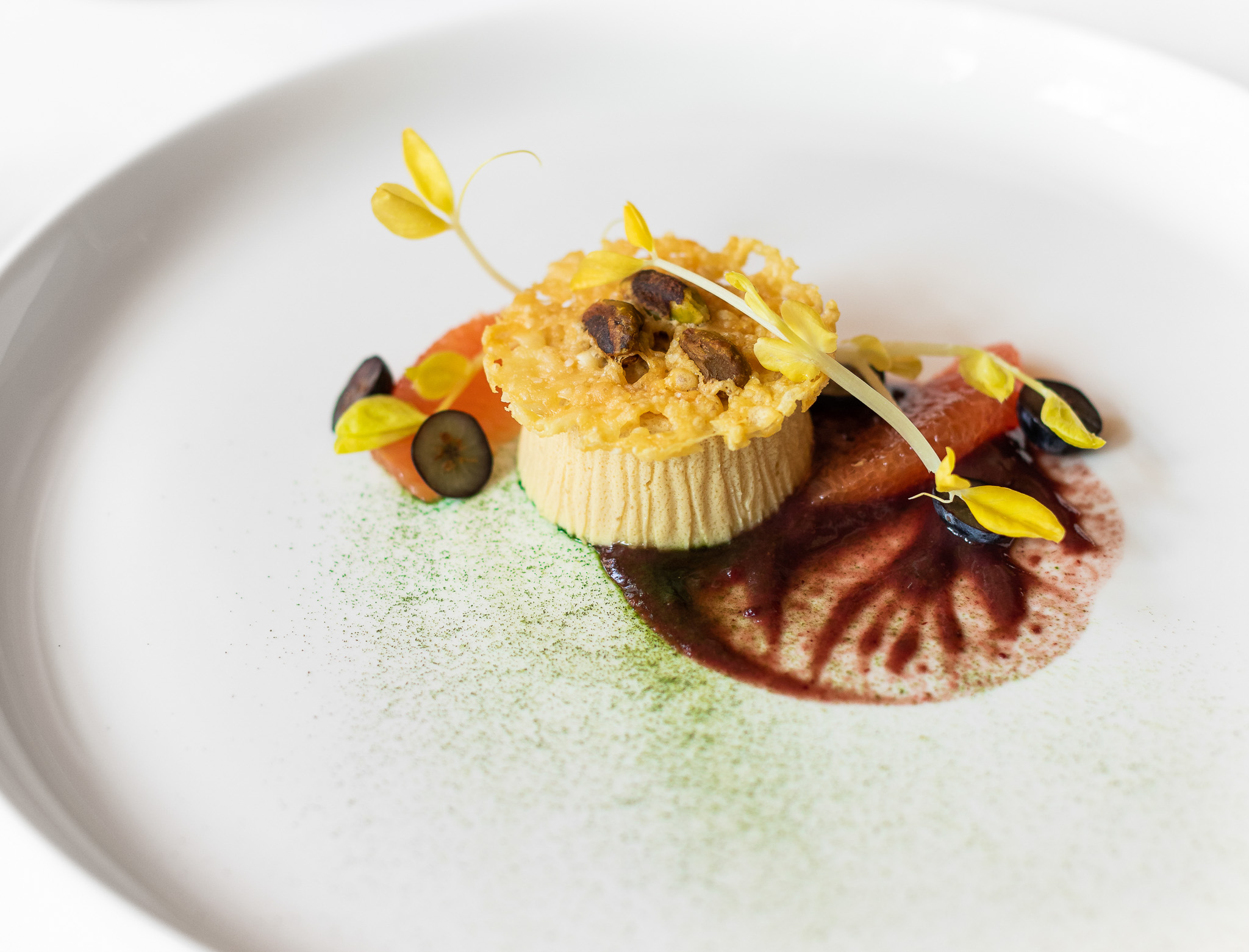 “We thought duck worked beautifully with the rich, sweet flavors of raspberries and port,” Collins says. “Adding Sichuan peppercorns brought in that unique tingle you don’t get from black pepper, while the carrots gave it a grounding sweetness.”